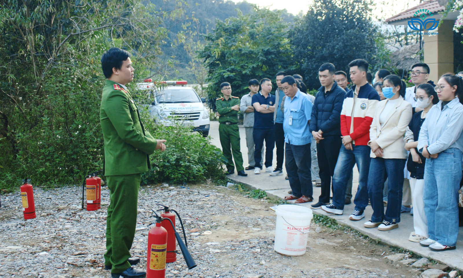 BỆNH VIỆN ĐA KHOA ĐỨC MINH TẬP HUẤN KỸ NĂNG PHÒNG CHÁY CHỮA CHÁY VÀ CỨU NẠN CỨU HỘNgày 21/11/2025, BVĐK Đức Minh phối hợp với Phòng Cảnh sát PCCC & CNCH tổ chức tập huấn nghiệp vụ phòng cháy chữa cháy (PCCC) và cứu nạn cứu hộ (CNCH) cho toàn thể cán bộ nhân viên. Tham dự buổi huấn luyện có Ban Giám đốc Bệnh viện, cán bộ nhân viên các khoa/phòng, cùng lực lượng Cảnh sát PCCC&CNCH trực tiếp giảng dạy.