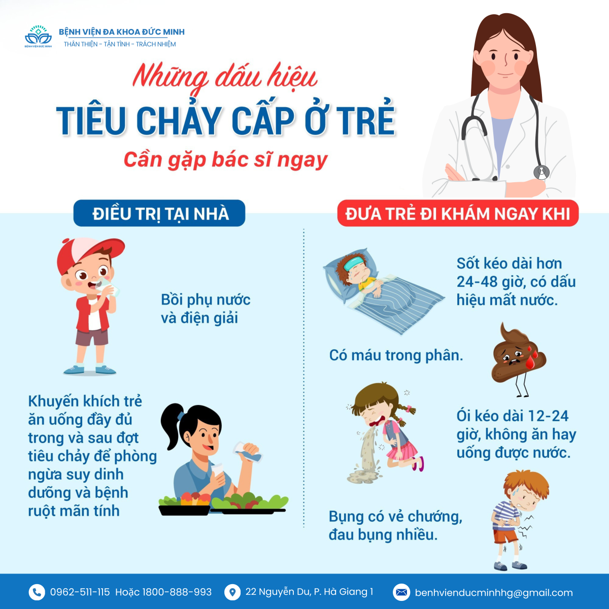 👶 Bệnh viện Đa khoa Đức Minh khuyến cáo: Phát hiện sớm – điều trị đúng – chăm sóc cẩn thận là chìa khóa giúp bé vượt qua tiêu chảy cấp an toàn và khỏe mạnh.