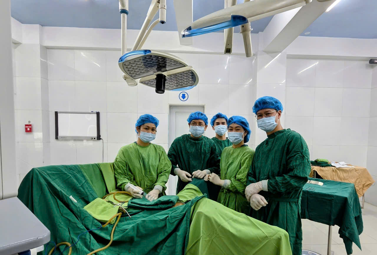 Các bác sĩ tiến hành mổ mở đường trắng giữa dưới rốn. Sau khi bóc tách dính mạc nối và đại tràng sigma, bộc lộ rõ đường rò sát cổ tử cung, thực hiện cắt bỏ đường rò và khâu phục hồi hai lớp chắc chắn, tái tạo thành âm đạo. Đặt dẫn lưu túi cùng Douglas và đóng bụng theo lớp. Phẫu thuật nhằm phục hồi giải phẫu và chức năng, đảm bảo kết quả lâu dài cho người bệnh.